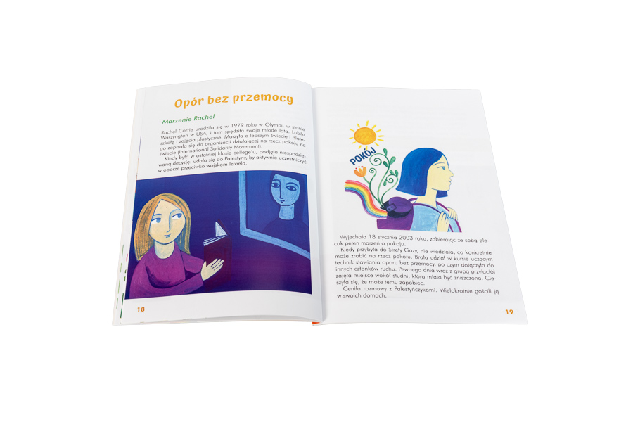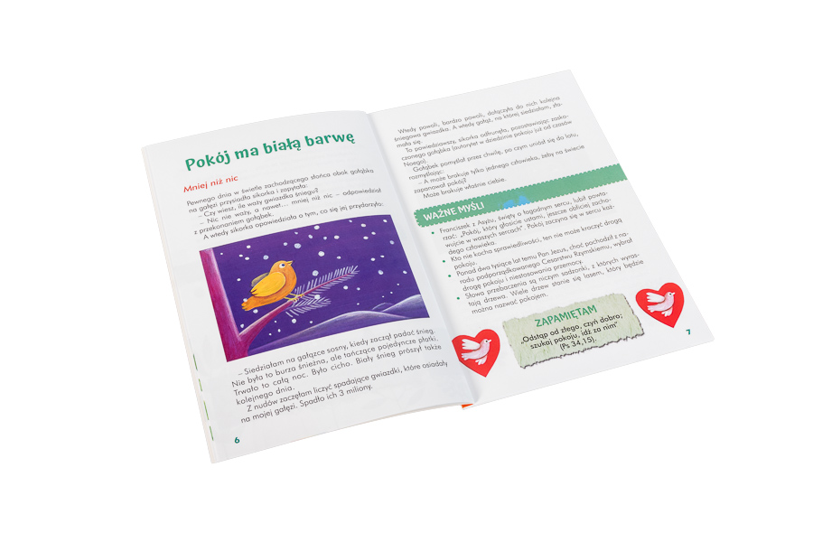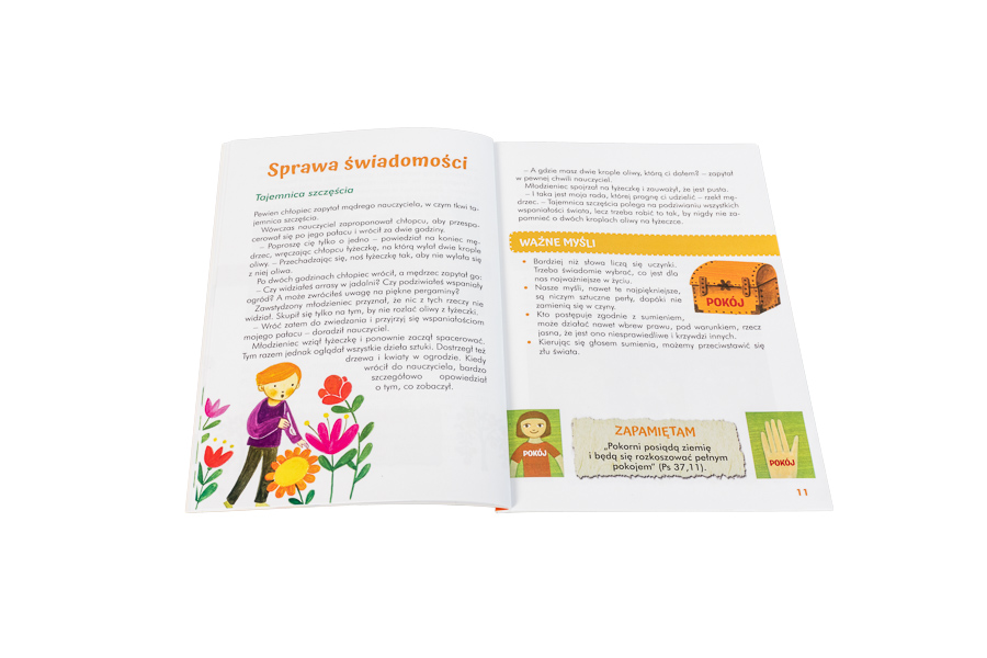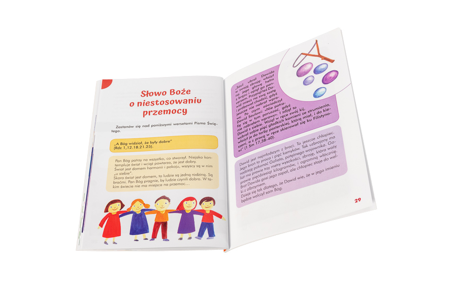 Na 32 kolorowych stronach tej publikacji dzieci, rodzice i katecheci znajdą rozważania, tematy do dyskusji i przemyśleń oraz mnóstwo inspirujących zdań, które sprawią, że umiejętność niestosowania przemocy stanie się dla wszystkich czymś zupełnie naturalnym.