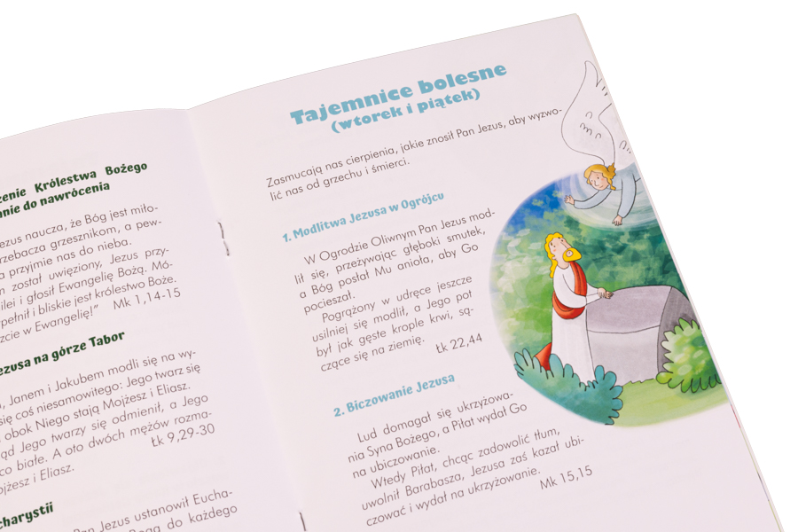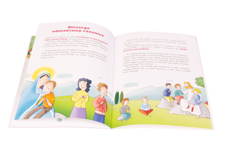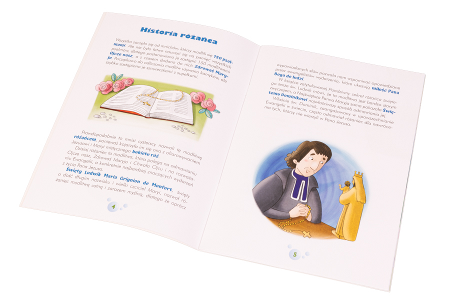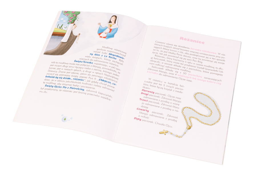 Na jej 32 stronach znajdziemy wiele cennych informacji dotyczących historii modlitwy różańcowej oraz świętych, którzy szczególnie ukochali ten sposób wychwalania Boga. Poznamy także tajemnice różańca świętego – co pomoże nam wzrastać w wierze.