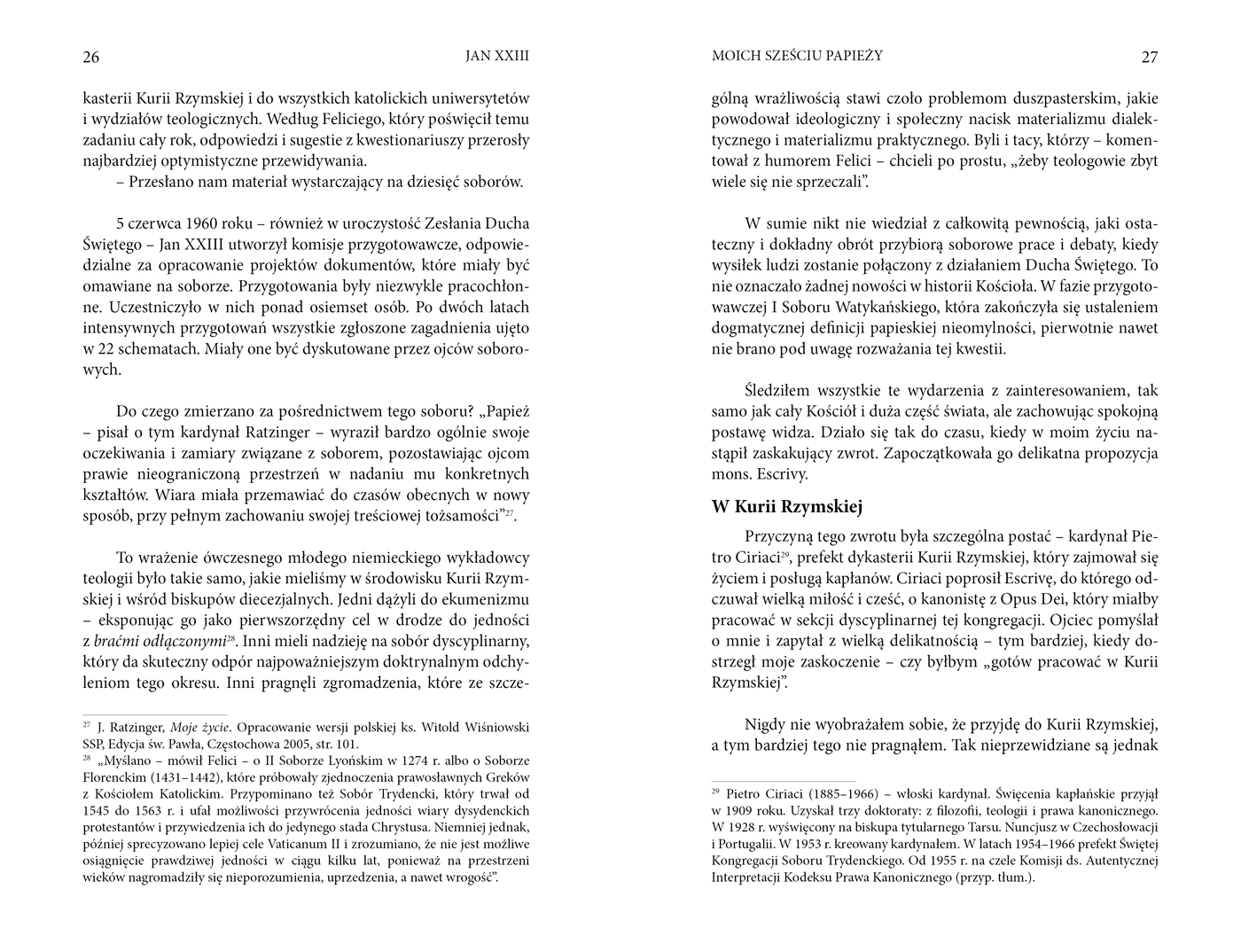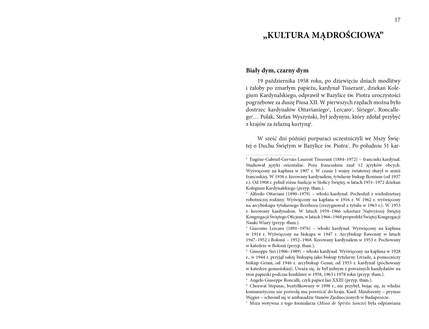 Na kartach książki sytuacje bardzo poważne przeplatają się z anegdotycznymi. Pozwalają one czytelnikowi zrozumieć jak funkcjonuje Stolica Apostolska, a także poznać sposób bycia, wrażliwość i zaangażowanie w misję ewangelizacyjną sześciu papieży – od św. Jana XXIII do Franciszka.